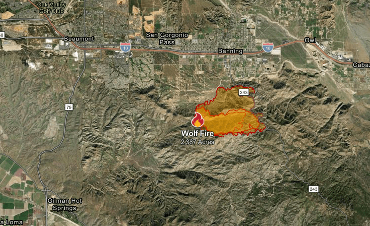 RIVERSIDE COUNTY, CALIFORNIA — A wildfire designated the WOLF FIRE is burning on Old Banning Idyllwild Road and Wolskill Truck Trail, which started on Sunday afternoon around 1509 hours PDT from an unknown cause.