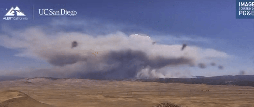 The [FIRE] can be seen from the KBAK//KBFX rooftop looking to the southwest with a pyrocumulus cloud and creating its own fire weather. – Local News Station