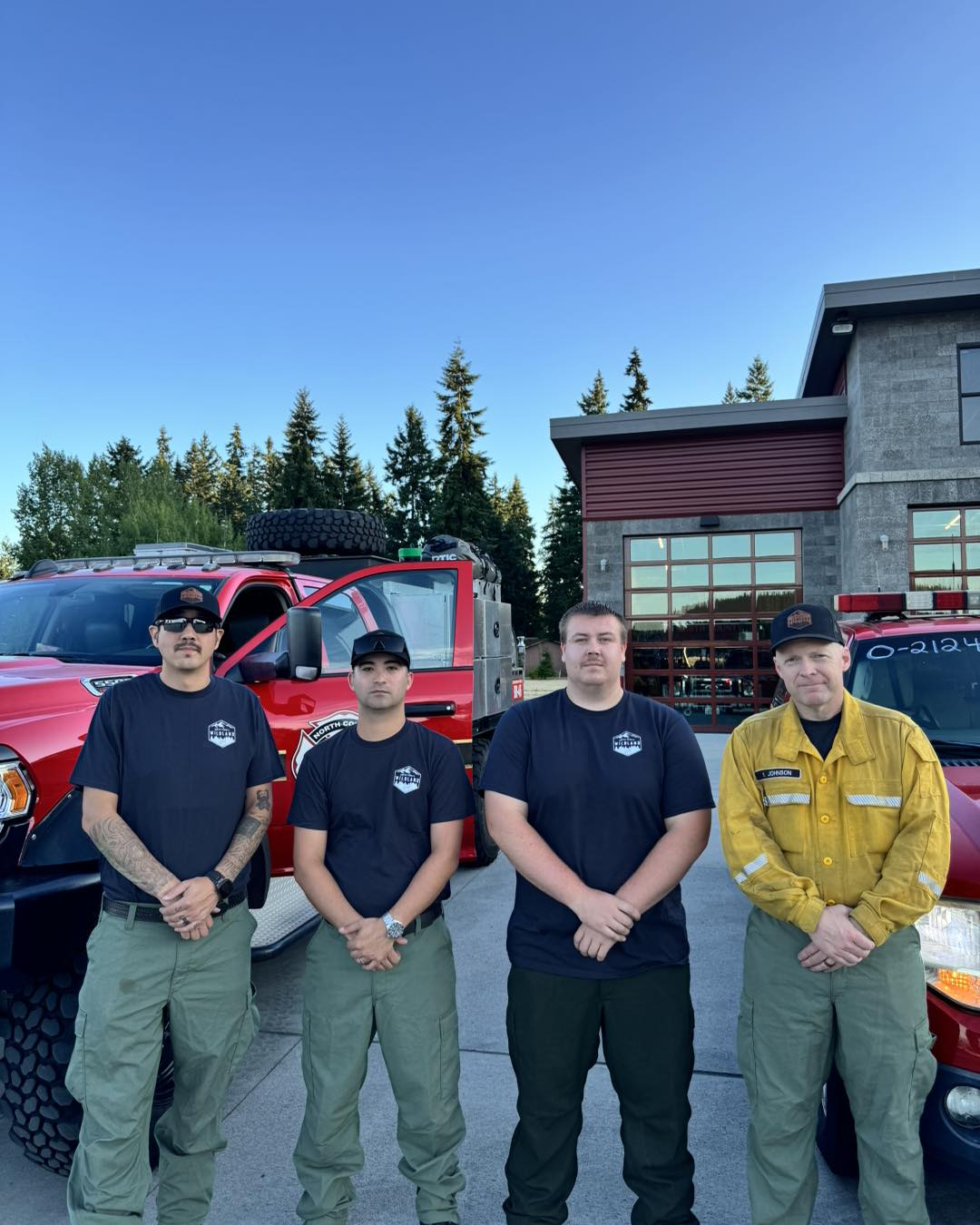 Arlington/Stanwood Firefighters IAFF Local 3438: Photo Credit. The Fire Agency sent two teams. NW Team 1: Strike Team Lead (t) K. Johnson and NW Team 2: Brush 46 with Gilman, Officer and Sato, and Thuringer.
