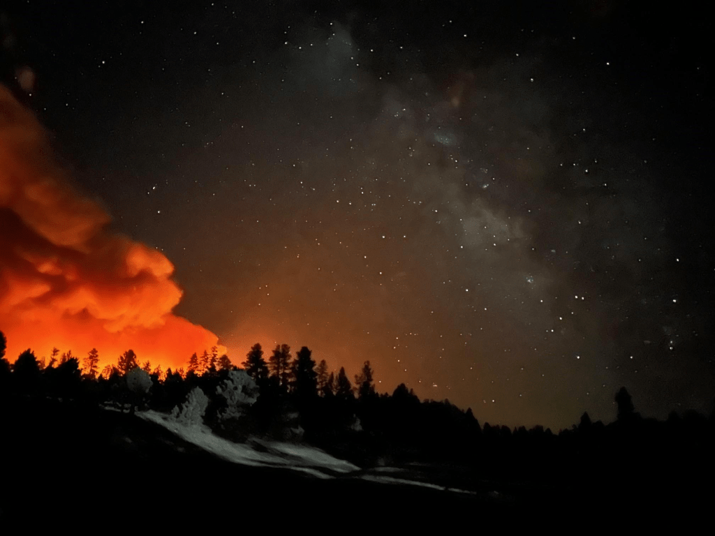 The fire has burned about 143,489 acres of mixed conifer, aspen regeneration, ponderosa pine, pinon-juniper, and sage. Firefighters currently have this wildfire at a 37% containment status.