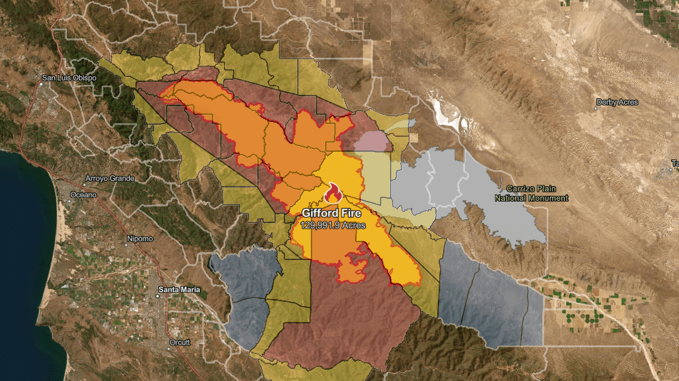 SANTA BARBARA COUNTY — The GIFFORD FIRE continues to rage, well beyond its start date on August 1, 2025, from an unknown cause that has yet to be ruled as undetermined. Fire Officials continue to investigate the cause.